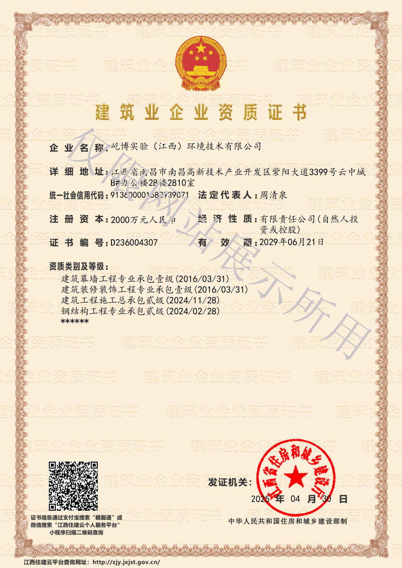 企业资质证书一级